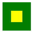 在畫這個圖時,雖然兩次都是使用 fillRect(0, 0, 100, 100) 填充了一個 100x100 大小矩形,但是顯示的結果卻是第二次填充的只是中間的一小塊,這是因為在兩次填充之間使用 clip 方法設定了剪輯區域,這樣第二次填充時只會影響到所設定的中間那一小部分區域。