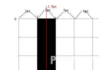 每個像素都有起止范圍,如圖所示,他們的范圍從左起,跨過1像素,到右止。