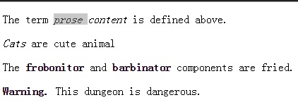 b 元素代表側(cè)重實(shí)用目的而不帶有任何額外重要性也不暗示不同語(yǔ)態(tài)或語(yǔ)氣的一段文本,比如一段文本摘要中的關(guān)鍵詞、一段審查中的產(chǎn)品名稱、文本驅(qū)動(dòng)軟件中的可執(zhí)行語(yǔ)句或者一篇文章的導(dǎo)語(yǔ)。