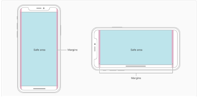 核心內容應該處于 Safe area 確保不會被設備圓角(corners),傳感器外殼(sensor housing,齊劉海) 以及底部的 Home Indicator 遮擋。也就是說 我們設計顯示的內容應該盡可能的在安全區域內;