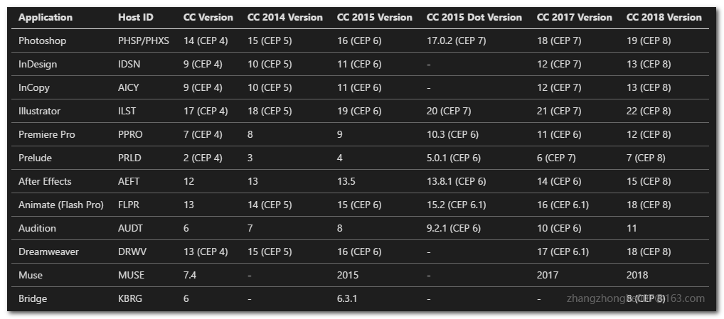 注意:如果宿主程序的版本不同,對應(yīng)的文件可能也不同。比如CC2017,就要把上面對應(yīng)部分改成 "CSXS.7"