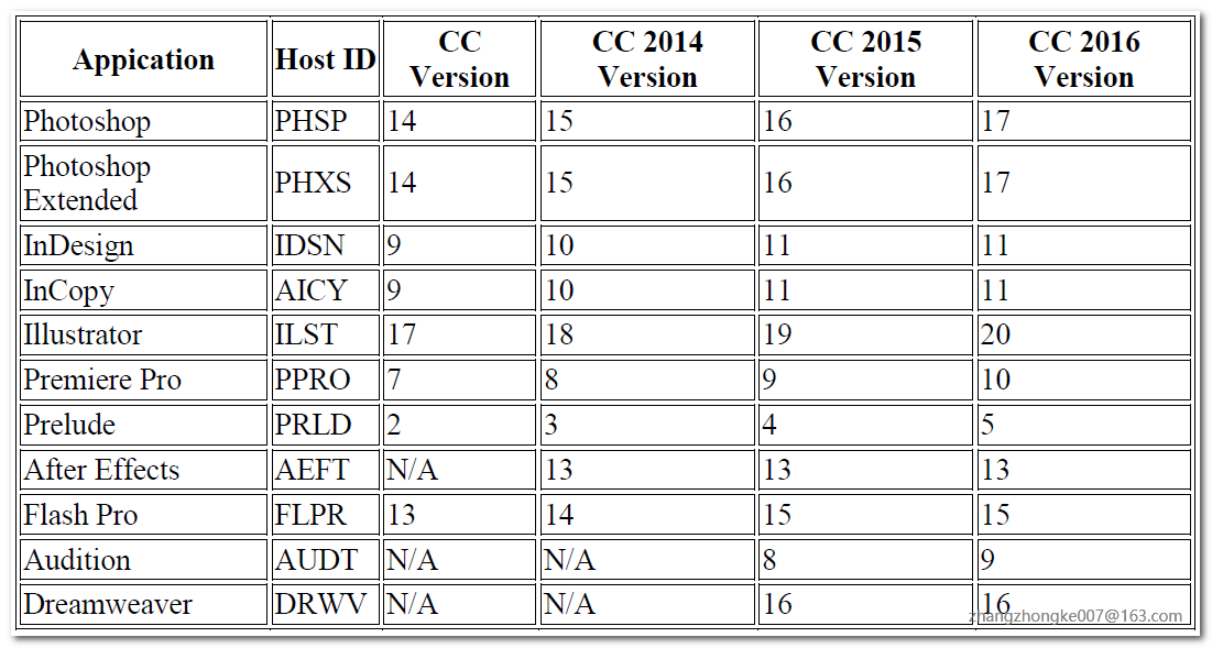 這里只支持Photoshop Extended,其Host ID對應(yīng)為PHXS,其他宿主程序的Host ID及版本如下: