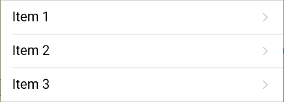 <ul class="mui-table-view"> <li class="mui-table-view-cell"> <a class="mui-navigate-right">Item 1</a> </li> <li class="mui-table-view-cell"> <a class="mui-navigate-right">Item 2</a> </li> <li class="mui-table-view-cell"> <a class="mui-navigate-right">Item 3</a> </li></ul>