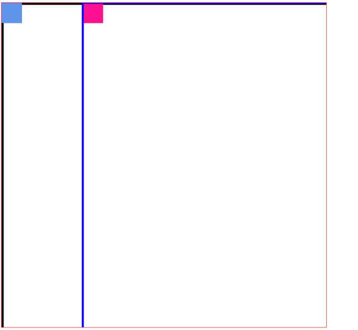 <!DOCTYPE html><html> <head> <meta charset="UTF-8"> <title></title> <style type="text/css"> canvas{ border:1px solid red; } </style> </head> <body> <canvas id="mycanvas" width="800" height="800"></canvas> </body> <script type="text/javascript"> var canvas = document.getElementById("mycanvas"); var context = canvas.getContext("2d"); //用黑色直線線表示開始的x/y軸 context.beginPath(); context.moveTo(0,0); context.lineWidth = 5; context.lineTo(800,0); context.stroke(); context.beginPath(); context.moveTo(0,0); context.lineWidth = 5; context.lineTo(0,800); context.stroke(); //原矩形:藍色 context.beginPath(); context.fillStyle = "cornflowerblue"; context.fillRect(0,0,50,50); context.fill(); //平移矩形:粉色 context.beginPath(); context.translate(200,0) //正:往右、下 context.fillStyle = "deeppink"; context.fillRect(0,0,50,50); context.fill(); //用藍色直線表示平移以后的坐標軸 context.beginPath(); context.moveTo(0,0); context.lineWidth = 5; context.lineTo(400,0); context.stroke(); context.beginPath(); context.moveTo(0,0); context.lineWidth = 5; context.lineTo(0,400); context.stroke(); </script></html>