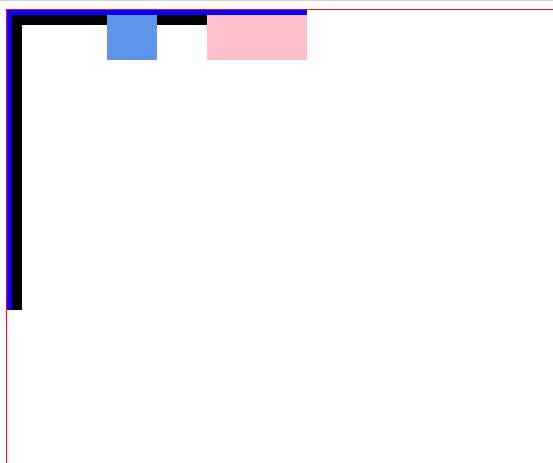 <!DOCTYPE html><html> <head> <meta charset="UTF-8"> <title></title> <style type="text/css"> canvas{ border:1px solid red; } </style> </head> <body> <canvas id="mycanvas" width="800" height="800"></canvas> </body> <script type="text/javascript"> var canvas = document.getElementById("mycanvas"); var context = canvas.getContext("2d"); //用黑色直線線表示開始的坐標系 context.beginPath(); context.moveTo(0,0); context.lineWidth = 30; context.lineTo(100,0); context.stroke(); context.beginPath(); context.moveTo(0,0); context.lineWidth = 30; context.lineTo(0,100); context.stroke(); //原圖:藍色 context.beginPath(); context.fillStyle = "cornflowerblue"; context.fillRect(100,0,50,50); context.fill(); //縮放:粉色 ,放大/小坐標系,圖形大小也縮放 context.save(); context.scale(2,1); //第一個參數是X軸縮放比例,第二個參數是Y軸縮放比例 context.beginPath(); context.fillStyle = "pink"; context.fillRect(100,0,50,50); context.restore(); //用藍色直線表示平移以后的坐標軸 context.beginPath(); context.moveTo(0,0); context.lineWidth = 10; context.strokeStyle = "blue"; context.lineTo(100,0); context.stroke(); context.beginPath(); context.moveTo(0,0); context.lineWidth = 10; context.strokeStyle = "blue"; context.lineTo(0,100); context.stroke(); </script></html>