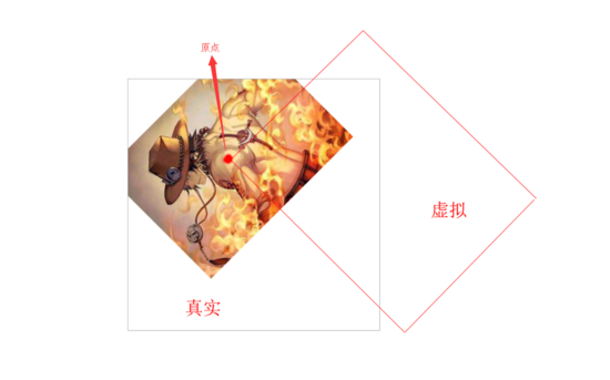 在這里我們可以看到我剛剛所說(shuō)的虛擬的畫布旋轉(zhuǎn)45°后再向虛擬的畫布內(nèi)插入圖片,然后真實(shí)畫布所呈現(xiàn)的就是虛擬畫布和真實(shí)畫布相交的部分了。這里可能不太好理解,大家仔細(xì)想想。