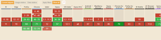 從上圖可以看到,主流瀏覽器Firefox、Chrome、Safari、Opera等等已經全面支持。