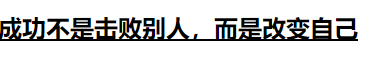 <!DOCTYPE html><html lang="en"><head> <meta charset="UTF-8"> <meta name="viewport" content="width=device-width, initial-scale=1.0"> <meta http-equiv="X-UA-Compatible" content="ie=edge"> <title>設置文本修飾線</title> </head><body> <u>成功不是擊敗別人,而是改變自己</u></body></html>