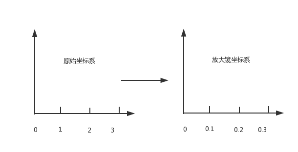 由原理圖我們知道,放大鏡中使用坐標(biāo)系的圖例要比原始坐標(biāo)系更加精確,比如原始坐標(biāo)系使用 1:100