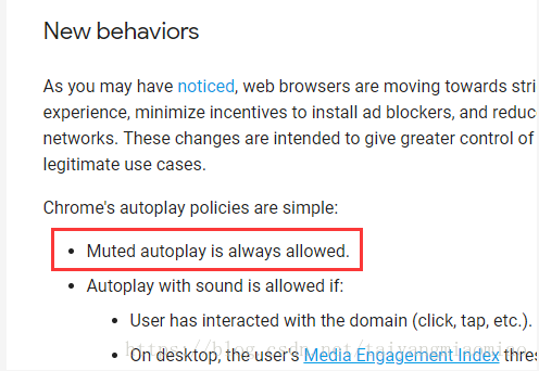 對video標簽仔細研究之后,發現,有這么一個新標簽muted,一開始沒有并沒想到muted和autoplay之間的關聯。因為關于muted標簽是這么解釋的: