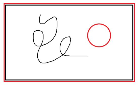 來個示意圖,黑色框框是我們展示用的畫布,黑色形狀表示已經繪制上去的內容,紅色框框是我們在畫有預覽效果的圖形時所使用的臨時畫布,紅色形狀表示我們鼠標拖動過程中繪制的預覽內容,每次需要繪制預覽內容我們就生成一個臨時畫布,放在頂層,隨心所欲的繪制,繪制完畢(鼠標抬起)將臨時畫布銷毀,在展示用的畫布(黑色框框)上繪制最終的圖形