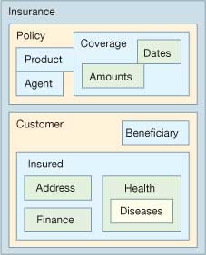 圖 1 闡釋了使用對象包裝器的一個示例人壽保險應用程序。每個方框表示一個對象,每個對象至少有: