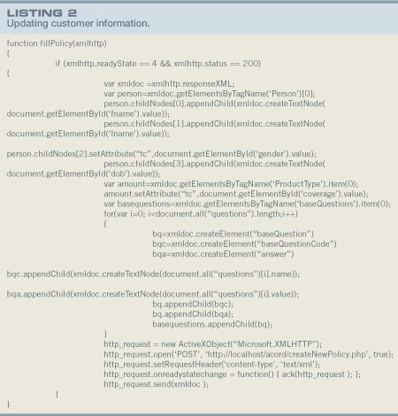 ·web 客戶機使用 ajax 捕捉返回的事件,并檢索 xml dom,然后用 web 頁面中輸入的信息填充該文檔。