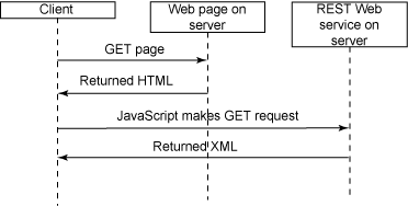 在新的模型中,和以前一樣,服務器也返回 html 頁面。但是這個頁面中有一些 javascript 代碼。在需要的時候,這些代碼向服務器請求更多信息。這些請求可以是簡單的 get 請求(representational state transfer (rest) 服務)或者 post 請求(soap)。