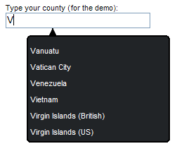 $query = $db->query("select value from countries where value like ‘$querystring%’ limit 10");