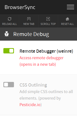 在面板里面你還會(huì)發(fā)現(xiàn)那個(gè)經(jīng)典的遠(yuǎn)程調(diào)試工具weinre也在這: