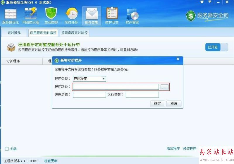 下面我們以添加服務器安全狗程序為例,來詳細看看該功能的設置情況: