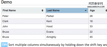 tablesorter可以將包含thead、tbody 標簽的表格編程可動態排序。