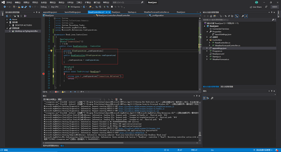 using System;using System.Collections.Generic;using System.Linq;using System.Threading.Tasks;using Microsoft.AspNetCore.Mvc;using Microsoft.Extensions.Configuration;namespace Read.json.Controllers{ [ApiController] [Route("[controller]")] public class ReadController : Controller { private IConfiguration _configuration; public ReadController(IConfiguration configuration) { _configuration = configuration; } [HttpPost] public async Task<string> ReadJson() { //讀參 string conn = _configuration["Connection:dbContent"]; return ""; } }}