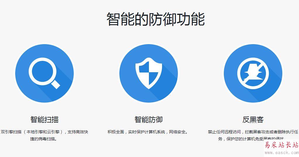 值得一提的是反黑安全衛士2015強大的智能防御功能,其中智能掃描采用雙引擎掃描(本地引擎和云引擎),支持高效快捷的病毒掃描;智能防御能夠積極全面識別并清除多種惡意軟件,例如病毒,木馬,流氓軟件,間諜軟件,勒索軟件等,實時保護計算機系統;反黑客通過禁止任何遠程訪問,攔截黑客攻擊或者刪除執行任務,保護用戶計算機免受黑客的侵擾。