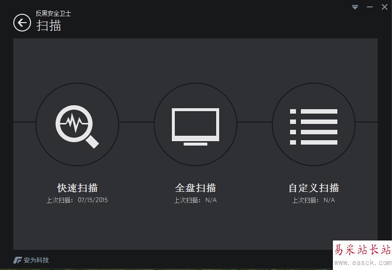 反黑安全衛士2015的掃描功能,可以實現快速掃描、全盤掃描、自定義掃描三種掃描方式自由選擇,清理消滅電腦里面的各種病毒。