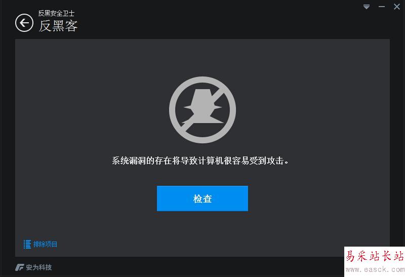 反黑安全衛士2015的反黑客功能,點擊“檢查”按鈕會對您的電腦系統進行深度檢查,主動出擊消除系統漏洞,不給任何黑客以可乘之機。