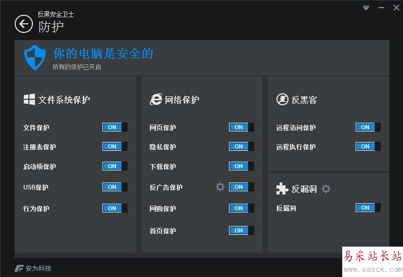 反黑安全衛士2015的保護功能,能夠為用戶提供文件系統保護、網絡保護、反黑客、反漏洞的智能保護,讓用戶能夠更加暢快無憂得使用互聯網帶給人們的精彩體驗。