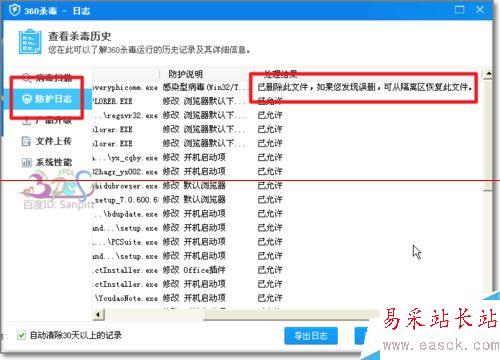 3、在日志中,點擊防護日志,這里記錄360殺毒日常檢查系統的安全的日志列表。
