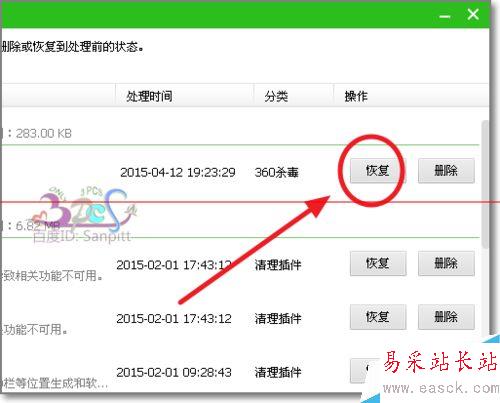 5、選擇被誤隔離的文件,點擊后面的恢復。