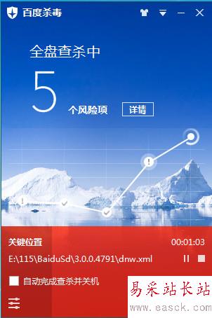 點擊全盤查殺,百度殺毒會將你系統(tǒng)仔細的查殺一遍