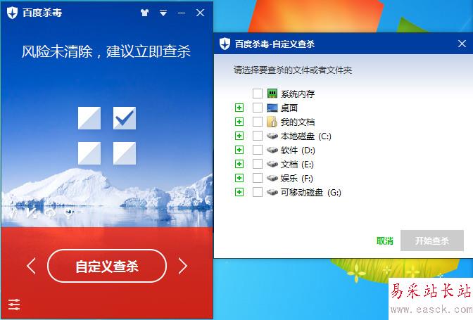 點擊自定義查殺,我們可以選擇自己要查殺的盤(包括U盤)