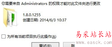 1、安裝目錄文件夾刪除不了,提示需要administrators權(quán)限,用管理員權(quán)限也刪除不了。如下圖: