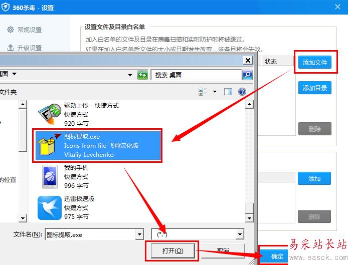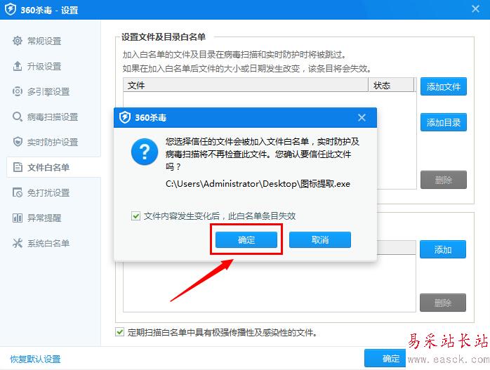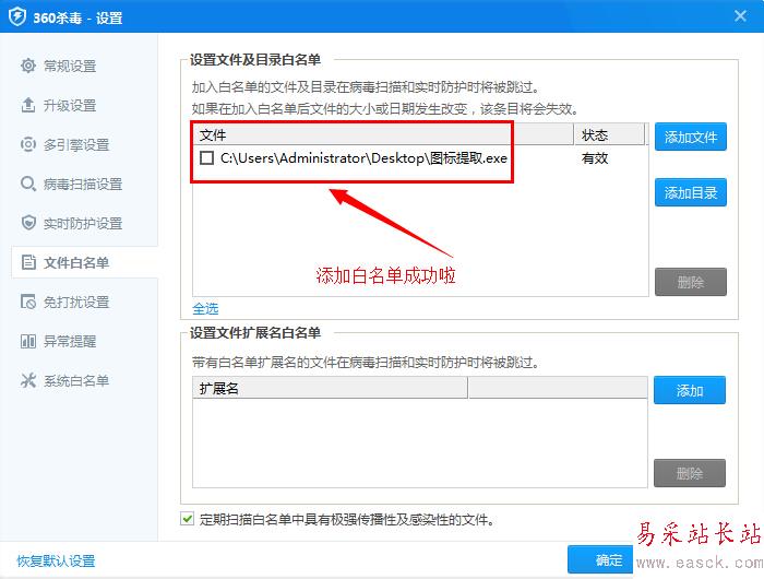 3.在里面有三個白名單設置,以第一個為例。點擊添加文件進行設置。把文件添加進來即可。