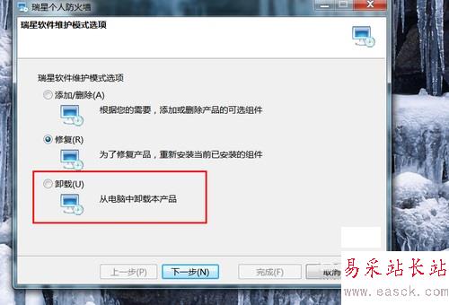 接下來會進入瑞星個人防火墻卸載界面,我們這里選擇“卸載”選項,然后點擊“下一步”繼續操作。