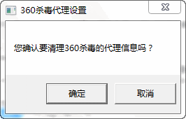 客戶端運行“取消代理.VBS”腳本,或者在 Windows “運行”對話框里直接輸入命令,360殺毒會詢問您是否要清除代理服務器設置: