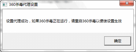 如果發現您需要代理服務器上網,360殺毒會自動測試代理服務器連接,如果連接正常,則會提示您設置成功: