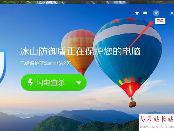 2、在打開的百度殺毒程序主界面窗口,點擊“菜單”工具按鈕。如圖所示;