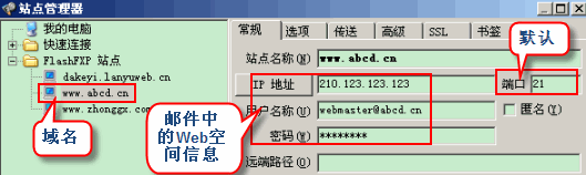以Flashfxp為例,依次點(diǎn)擊 站點(diǎn)-站點(diǎn)管理器,添加站點(diǎn),配置站點(diǎn)信息