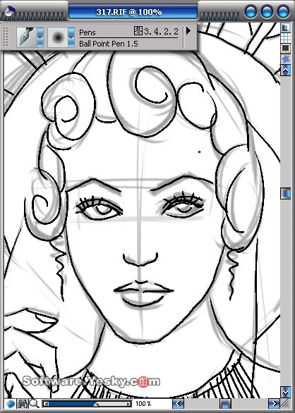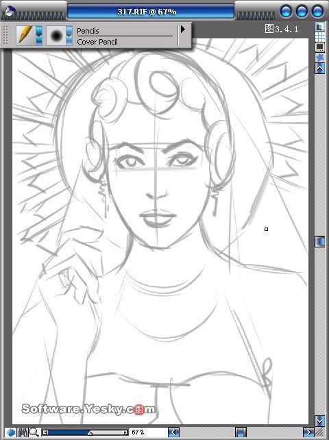 1.打開painter 8,新建一個空白文件。使用【pencils】/【cover pencil】(鉛筆/覆蓋鉛筆)畫出大概的草稿。(圖3.4.1所示)