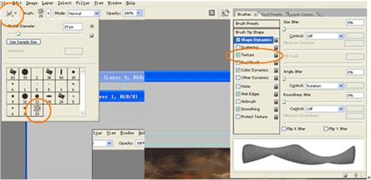 換用手指工具,選一個扁長的筆刷,將壓力設為90左右。這種筆刷比較接近油畫刮刀的效果,這種刮刀可以將已畫的色彩擠壓、調合、摸平,使氣氛更加凝重肅穆。