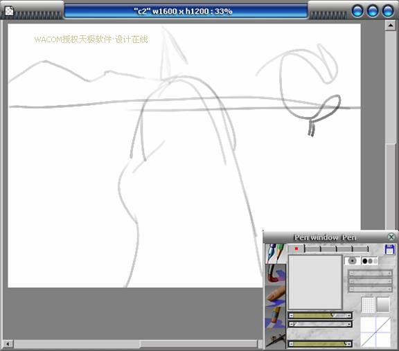 2.使用intuos3配合pen的筆刷,開始繪制基本的構圖信息。