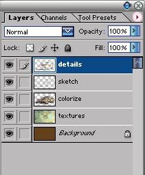 這張渲染圖追求更加寫實一些的效果,重點放在光影效果和質感的表現上。并充分利用電腦繪圖的便利性,使用紋理和不同屬性的筆刷,渲染出一張生動而豐富的效果圖,尤其是通過 intuos3 這種細膩的 1024 壓感技術和傾斜識別技術可以將光影效果表現得淋漓盡致。你也可以去試試,很有意思的。