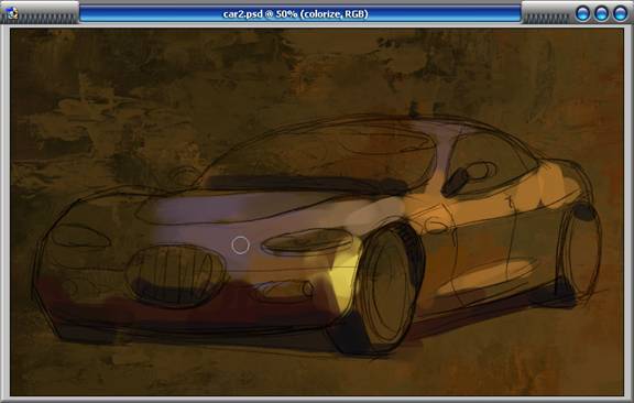 4. 新建一層作為上色使用,選用一個 30 像素左右的標準圓筆刷,進行初步的上色,先確定車身主要的光源關系。