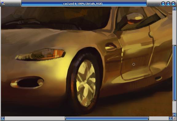 6. 再建一層作為細化使用,使用一個噴筆模式的軟筆刷,柔和局部的層次關系,重點表現金屬質感。利用 intuos 3 的輕柔運筆手勢,控制噴筆工具的作用強度。