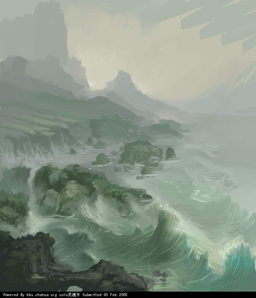 對于背景來說。我個人有自已的一點體會(雖然自已畫得并不好),也許就是很多人苦惱的,畫出來的東西不像是自然界的,特別是當你畫的是自然界存在的事物的時候(也就是非人工制品),總感覺畫的帶有一種人為的痕跡,要么規整等等。我個人覺得自然界最大的特點就是不可重復,什么都是隨機的,人的指紋都很難有兩個人一樣,那么自然界的事物舉個例來說,一片草地上的草沒有兩根是會以完全一樣的角度指向同一個方面。一片森林中,不會有兩棵樹的形象是一樣的。大到形象,小到每一片葉子,每一根樹枝的粗細,朝向。其它的事物以此類推。