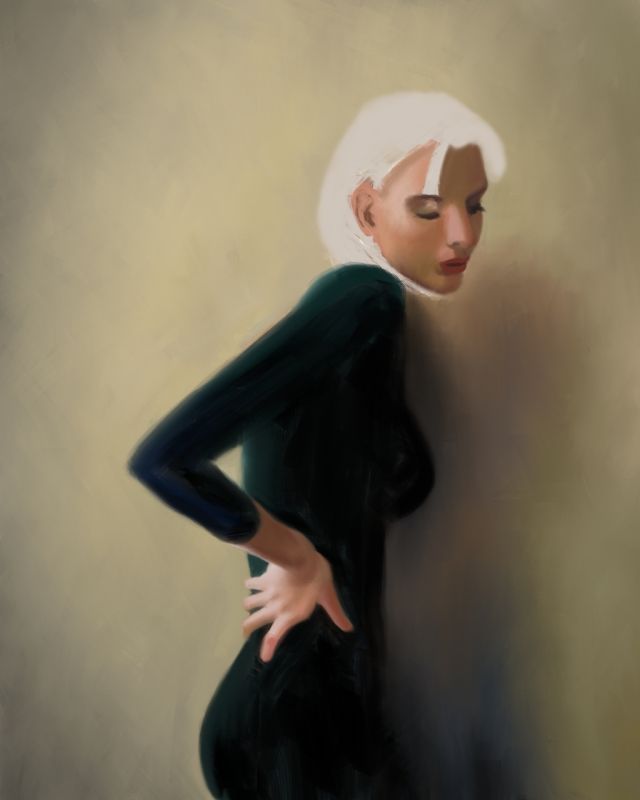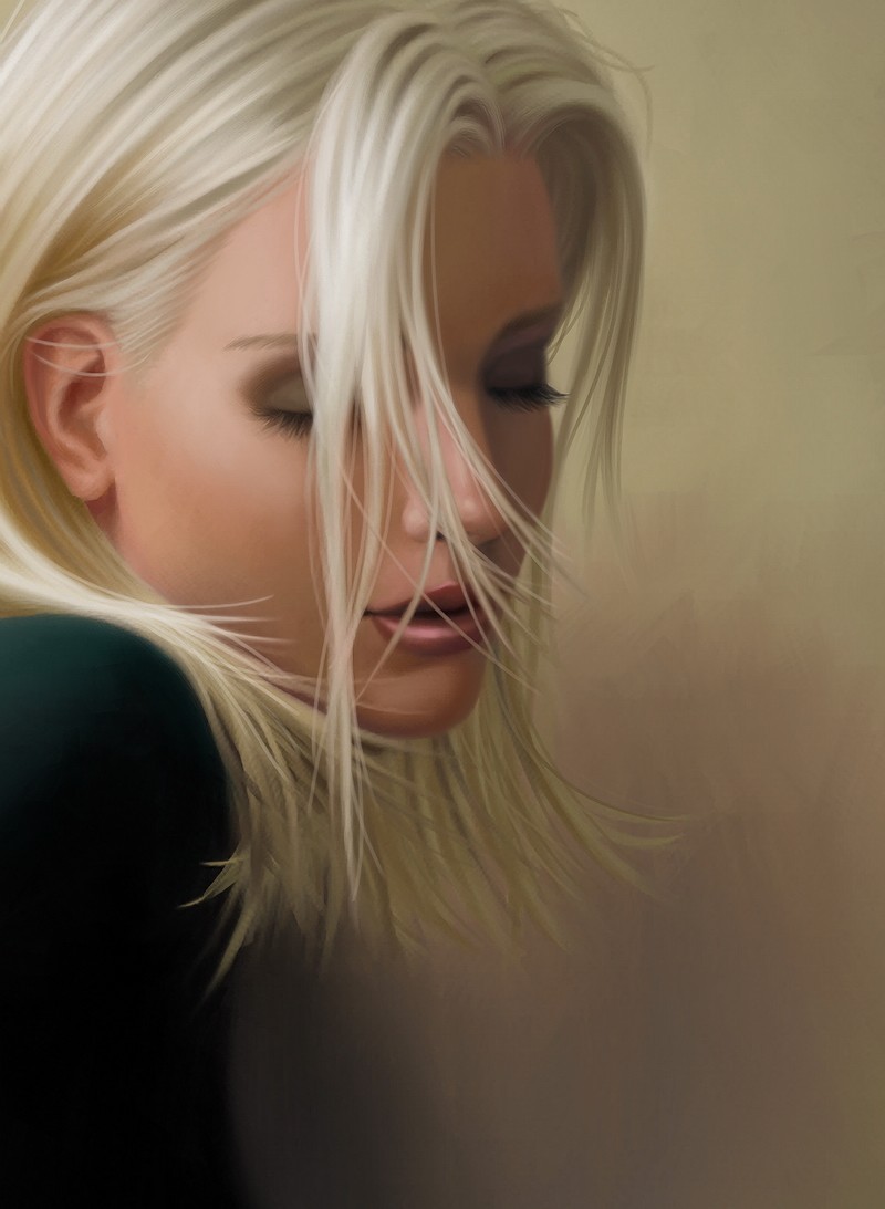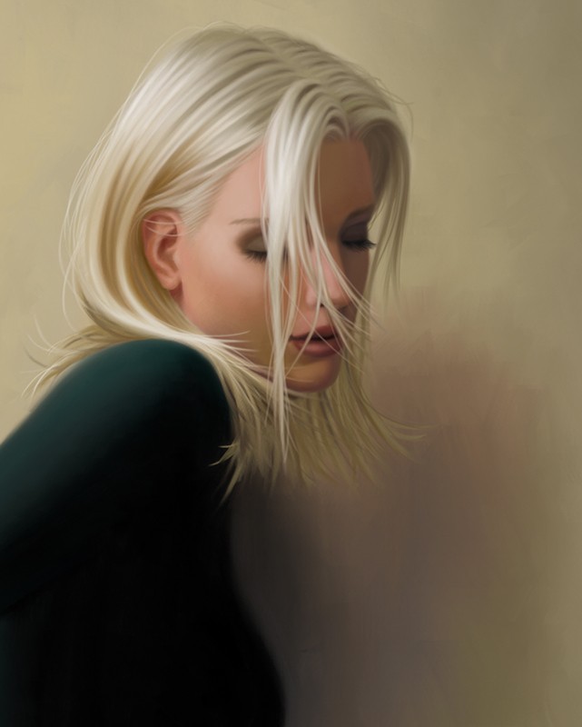修正手部細(xì)節(jié)后,同時(shí)完成頭發(fā),簽名然后去睡覺!如你所想,我對(duì)用油畫刀畫細(xì)節(jié)已經(jīng)發(fā)狂了。這并不是我原先所想的。我只想要一個(gè)松散簡(jiǎn)單的畫,卻以改變油畫刀的大小到非常小以畫細(xì)節(jié)而結(jié)束。