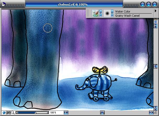 本例使用painter 8結合intuos 2數位板模擬了幾米風格的插畫,painter 8豐富的水彩畫筆讓插畫的創作有了更多的選擇,intuos 2數位板的出色繪畫手感也讓繪制過程更加流暢。如果能夠結合自己的心情再加一些抒情文字,那么這樣風格的成人兒童畫一定會讓人耳目一新的。 文章末尾提供.rif文件供大家下載參考。