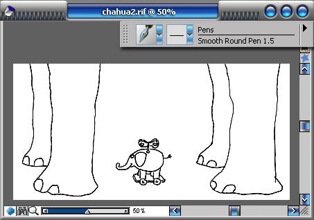1.運行painter 8軟件,新建一個空白文件。新建一個圖層,把圖層混合模式改為gel。使用pen/smooth round pen 1.5,選用黑色畫出基本的輪廓線條。不必在意線條的流暢,允許一些歪扭,這樣反而更有情趣。