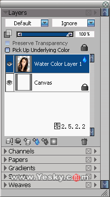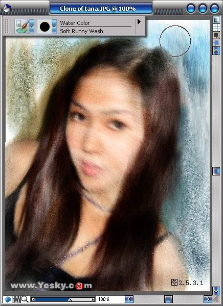 3.新建一個水彩圖層,使用【water color】中的一些筆刷進行背景的自由繪畫,手工添加一些充滿情趣的紋理筆觸。(圖2.5.3.1和圖2.5.3.2所示)