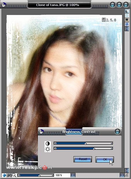 8.在【brightness/contrast】的調節(jié)框中拖拽相關調節(jié)滑塊,增加一些亮度和對比度的調節(jié)。(圖2.5.8所示)
